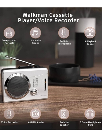 Walkman Cassette Recorder With AM FM Radio With Built-In Speaker