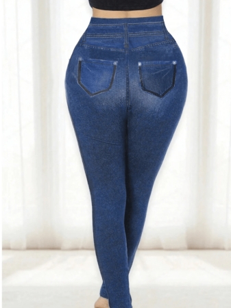 Women Leggings Seamless High Elastic Pants Denim Effect Tight Gym Running Slim Pants High Waist Casual Trousers Streetwear Leggings,Classic Daily Wear
