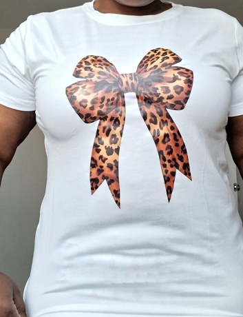 3 reviews for Women Leopard Bow T-Shirt, Casual Crew Neck Short Sleeve Top, 95% Polyester 5% Spandex Knit Fabric, Regular Length, Fashionable For Summer And Spring