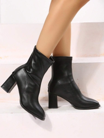 3 reviews for Women Mid-Calf Boots, Beige, Chunky Heel, Back Zipper, Simple And Comfortable