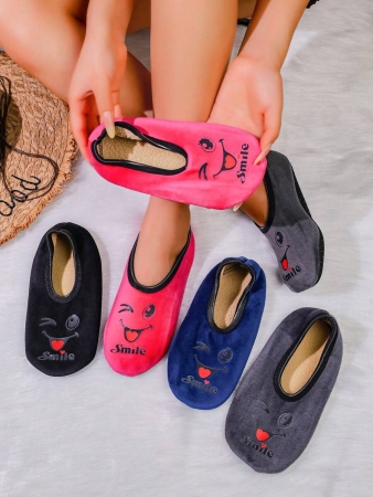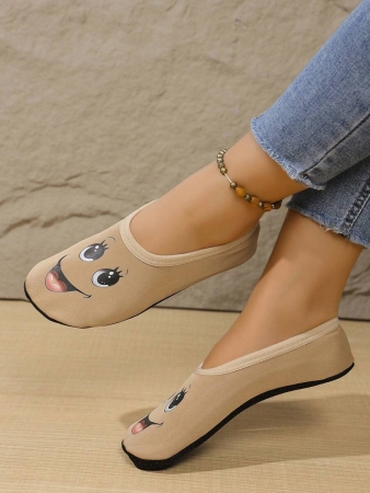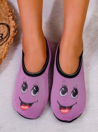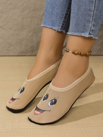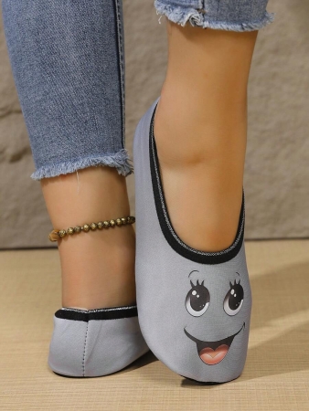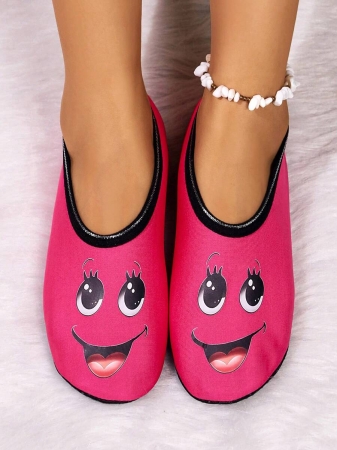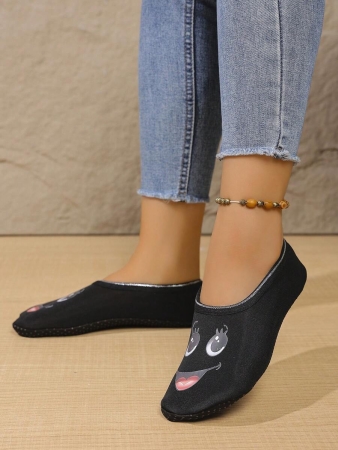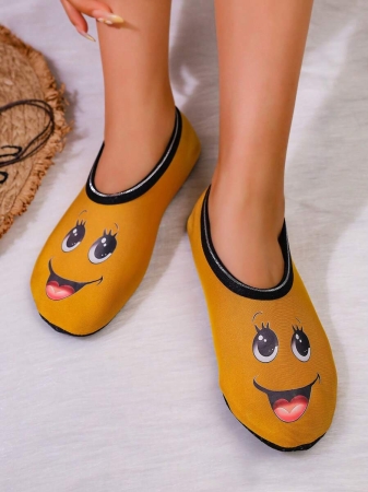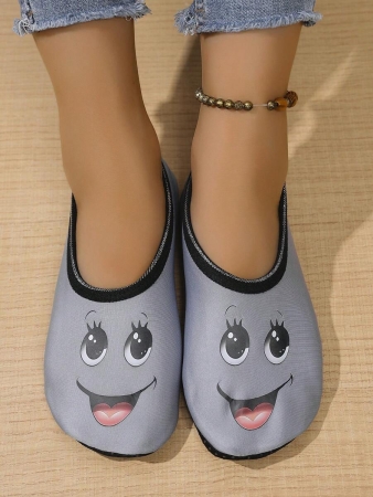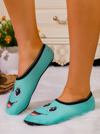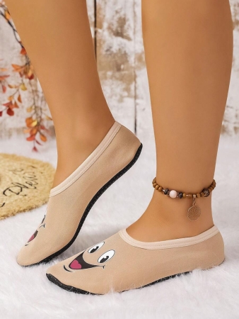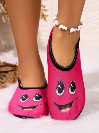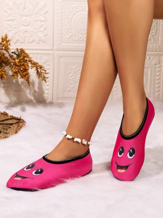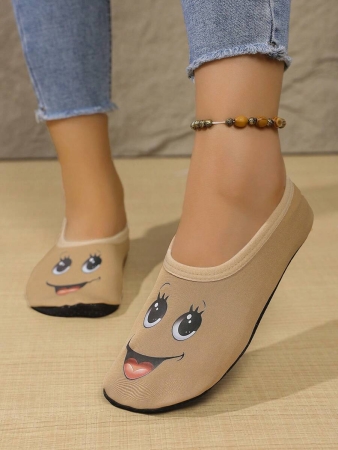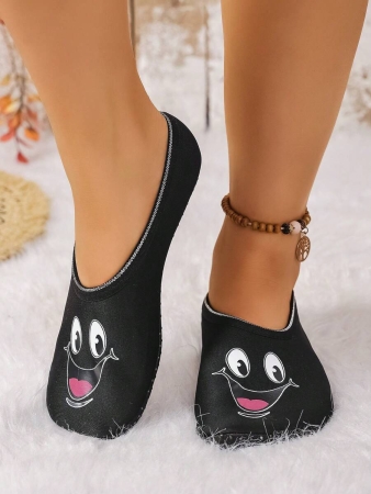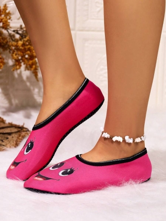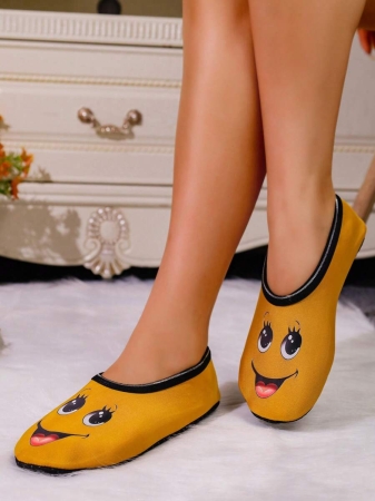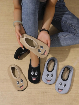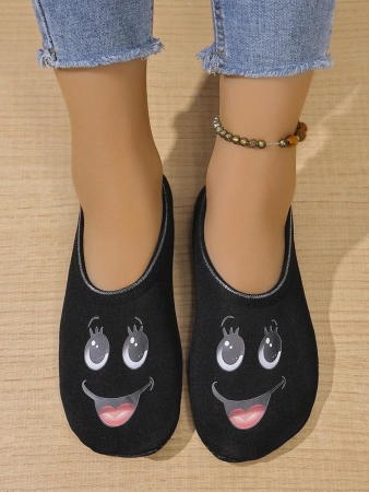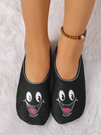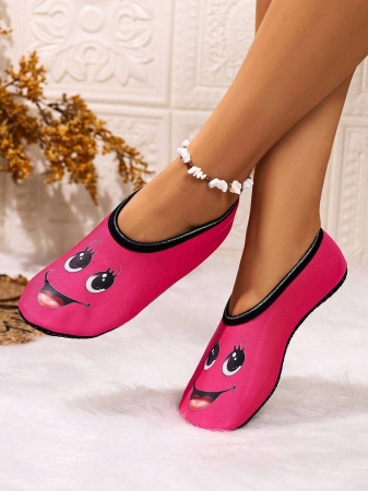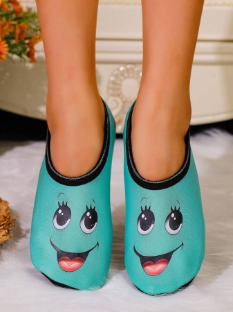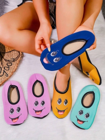 Women’s Cute Face Design Breathable High Elastic Indoor House Slippers, Suitable For Home, Beach, Yoga, All Season