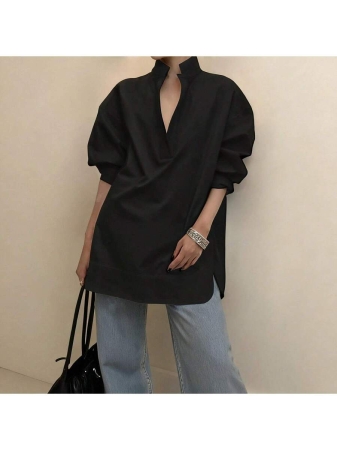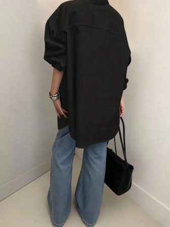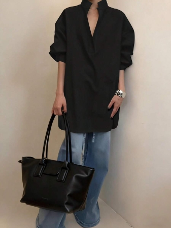 3 reviews for Women’s Fashion Casual Versatile Long Sleeve Shirt, Asymmetrical Hem Solid Notched Neck Sexy Minimalist Office Shirt, Fashionable Women’s Notch Collar White Polyester Semi-Sheer Long Sleeve Shirt