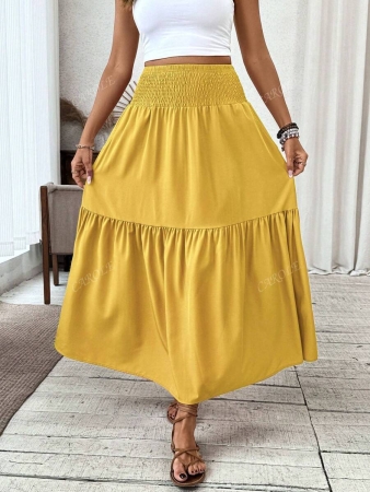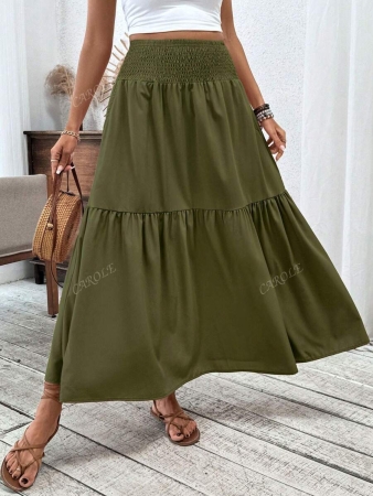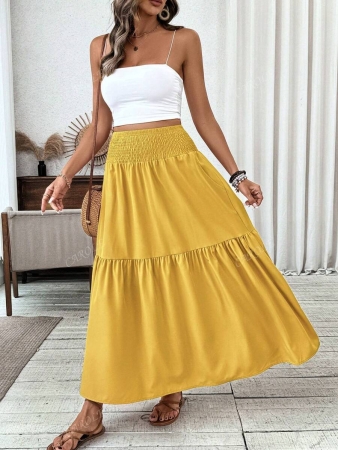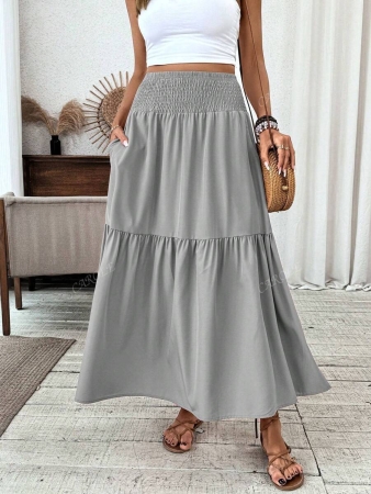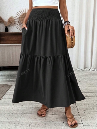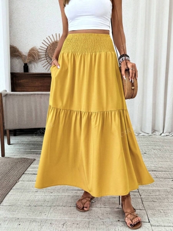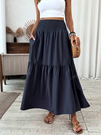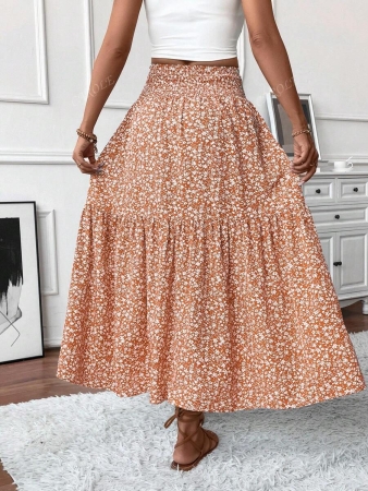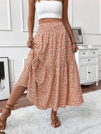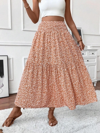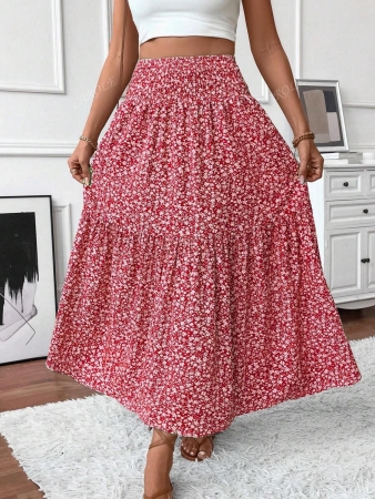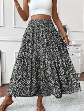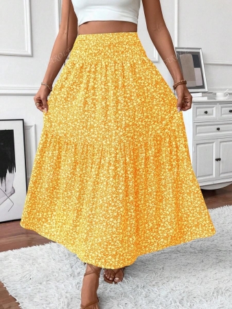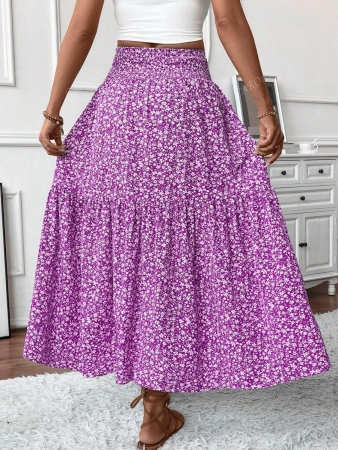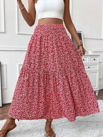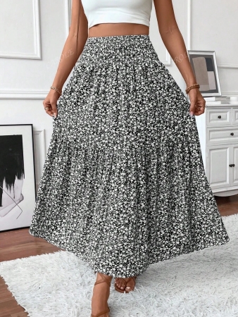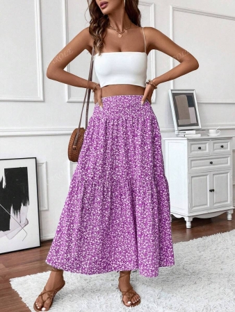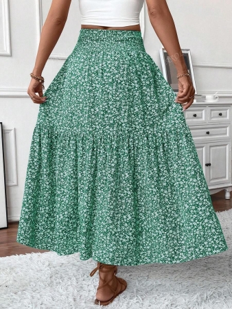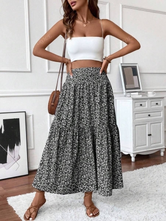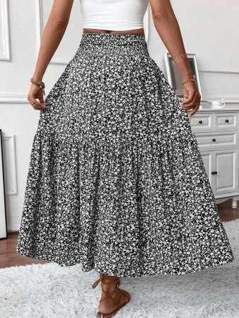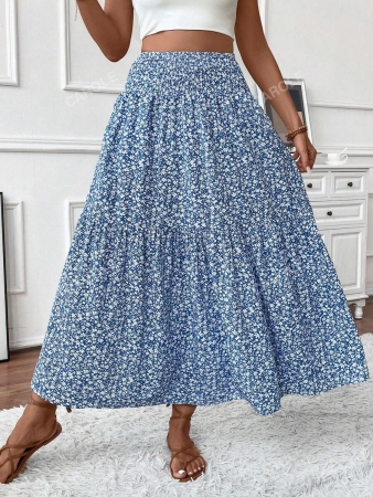 3 reviews for Women’s Maxi Skirt Tiny Floral Casual Elastic Waist With Pockets Ruffled Hem Ladies Summer A-Line Long Skirts