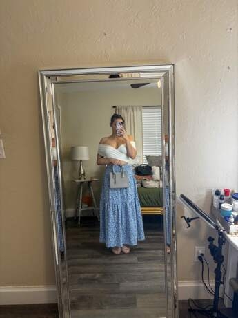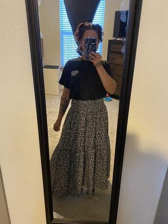 I got this in both colors it’s so good.. It is the best skirt of all skirts. It has large pockets, it’s a real maxi skirt that’s 36 inches long, it has that elastic smocked waist band that’s the most comfortable thing in the world, and it’s so wooshy that you can wear it even 9 months pregnant! I wish this came in 10 colors, I would get every one.