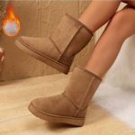 Women’s Mid-Calf Snow Boots, Thermal Lined Thick Tube Flat Winter Shoes, Outdoor Short Tube Thick Bottom Warm Boots, Slip-On Mid-Calf Boots, Winter