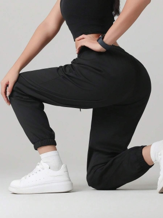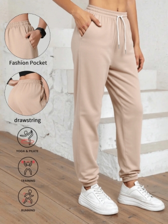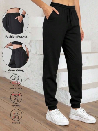 Women’s Outdoor Casual Running Pants – Elastic Waistband Pockets Sports Trousers, Lightweight All-Season Pants, Women’s Athletic Long Pants, Suitable For Gym, Machine Washable, Solid Color Design, Comfortable Fit, Y-Shape Style, Stretchy Waist, Ideal For Outdoor Hiking & Sports Enthusiasts