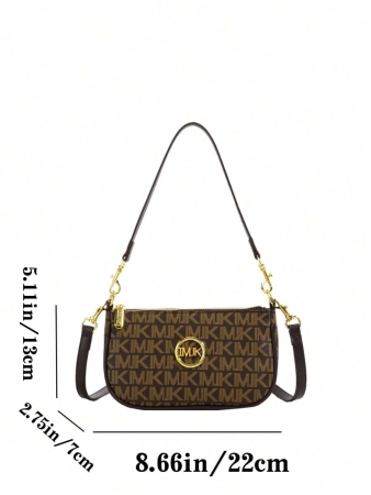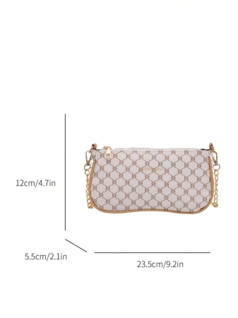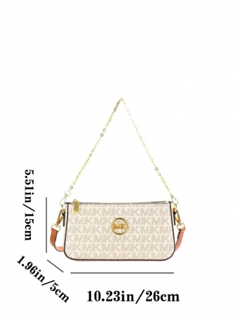 Women’s Shoulder Bag With Armpits Flap, Contrast Color Patchwork, Chain Decor, Adjustable Strap, Crossbody Letter Decal Casual Tote, New Design