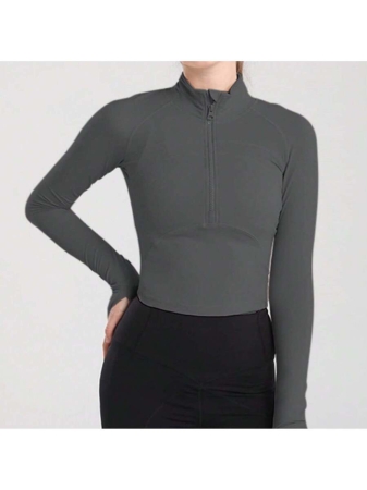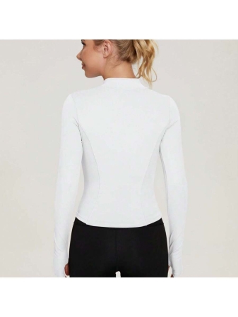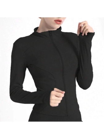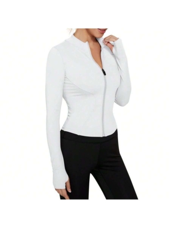 Women’s Sport Jacket Lightweight Full Zip Up Yoga Jacket,Suitable For Outdoor Activities,Slim Fit Workout Gym Running With Thumb Holes, Solid Color Stand Collar Sports Tops, Slim Fit Yoga Outerwear, Women’s Sportswear Workout Clothing For Indoor Outdoor Wear