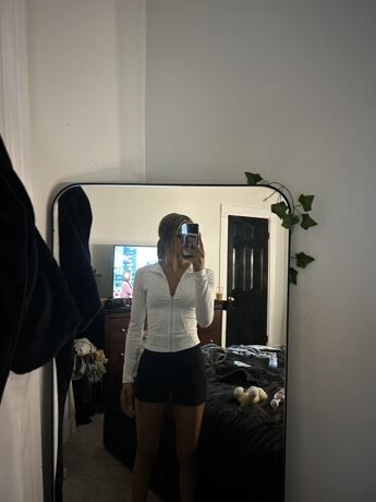 very cutie like zip up, quality actually is pretty good. doesn’t feel like compression but definitely hugs(wearing white tank top, slightly see through)