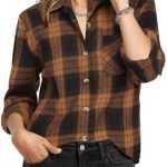 Women’s Vintage Plaid Flannel Shirt With Lapel Collar, Long Sleeve Button Front Pocket Shirt Jacket For Casual Office, Home And Daily Wear In Fall Winter Spring
